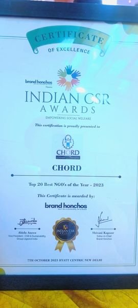 We are absolutely thrilled to announce that CHORD has been recognized as one of the Top 20 Best NGOs in India at the prestigious Indian CSR Awards 2023! ![]()